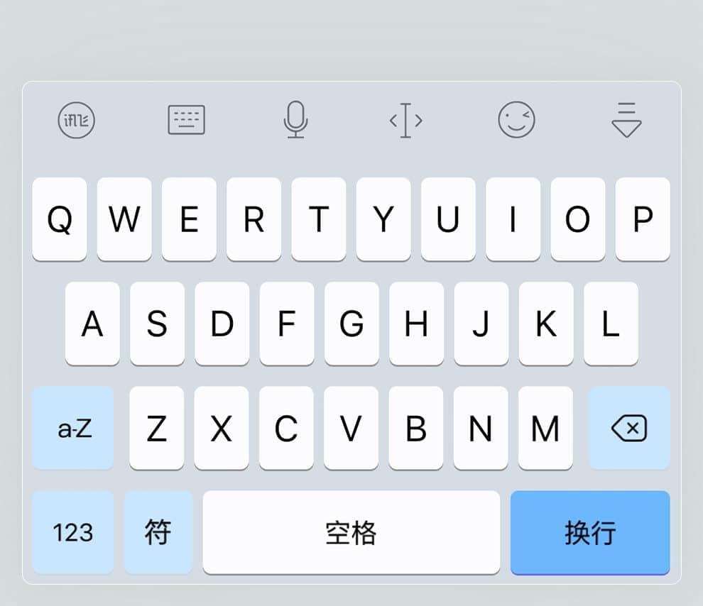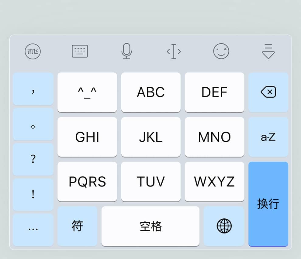 超精仿苹果iPhone系统iOS 13默认输入法浅蓝色风格~26键和9键拼音去除逗号等功能用于增大空格键和回车键,新增苹果iOS系统原机按键音效。